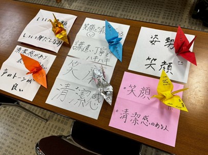 マナーや好印象に必要な姿勢をはじめ、社会人としての心構えや来客・電話応対、お礼状の書き方に至るまで、おもてなしの心遣いについてお伝えいたしました。